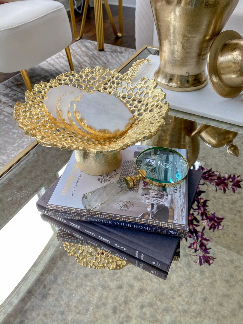 Inspire Me! Home Decor Round Marble Tray With Gold Edge And Metal Details