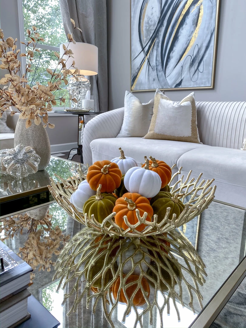 Description: These metal gold branch bowls bring such an interesting and natural feel to your decor! They are perfect to style your fall pumpkins in and come in 2 sizes!!