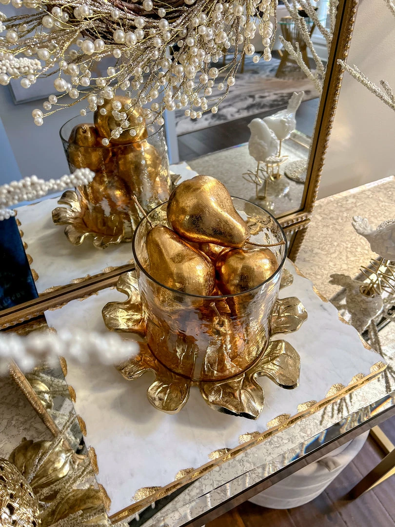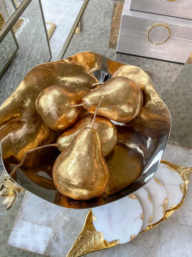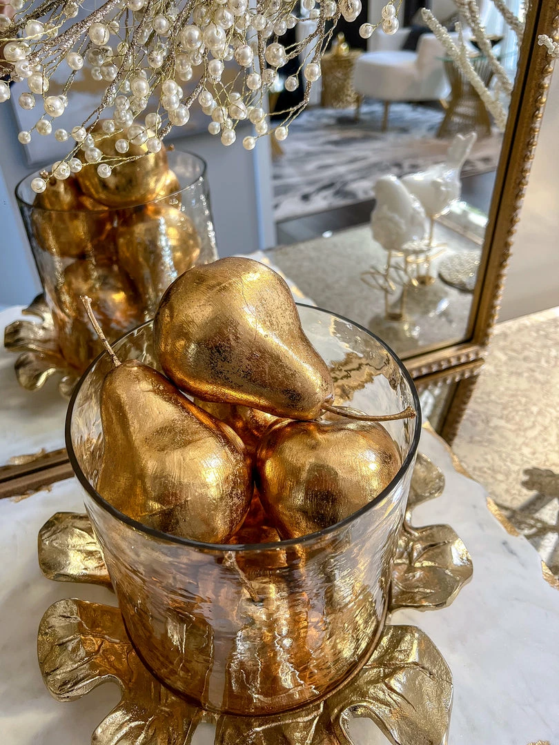 This set of 4 gold pears are perfect to add to your bowl fillers or to display on your tree, they have a nice metallic gold finish and are a great shape!
