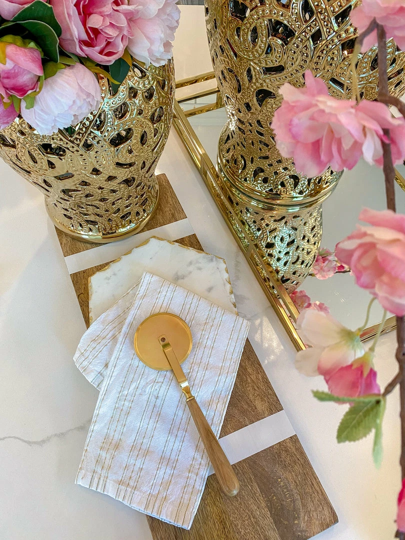 Description: This stunning gold round knife is a great kitchen accessory! Great for cutting that perfect slice of pizza or pie!