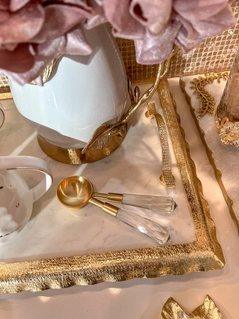 Description: This gorgeous deep gold set of four spoons features a sleek acrylic handle will add to your dessert or coffee station in such a stylish way!