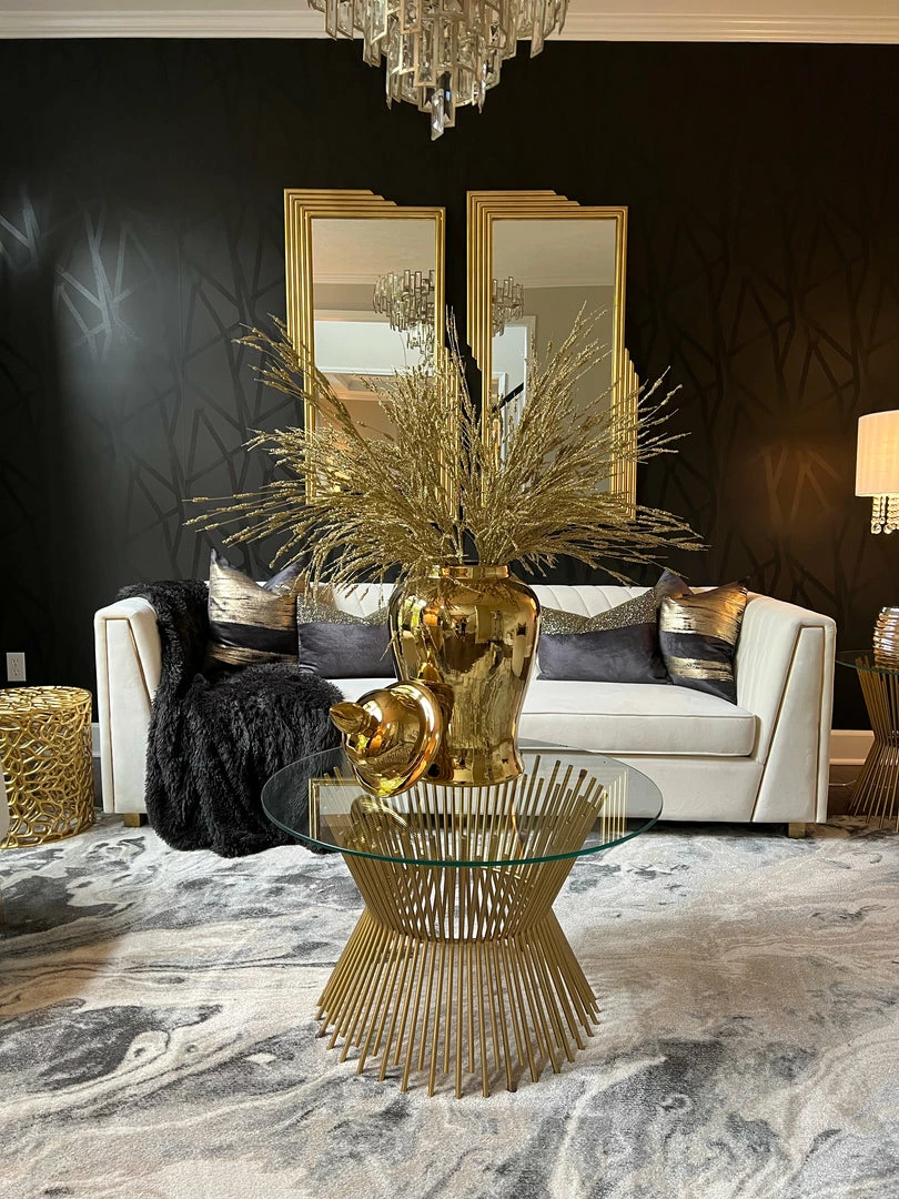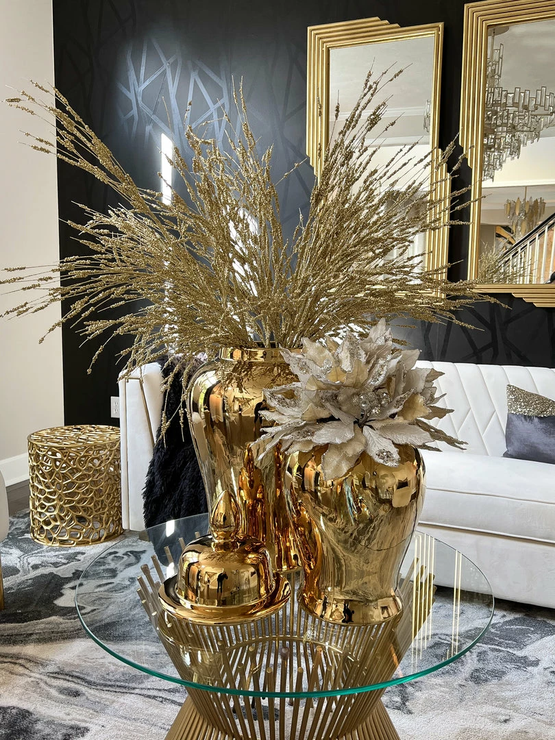 Description: This beautiful shiny gold ginger jar is a classic statement piece! This is the perfect centerpiece in your home decor!