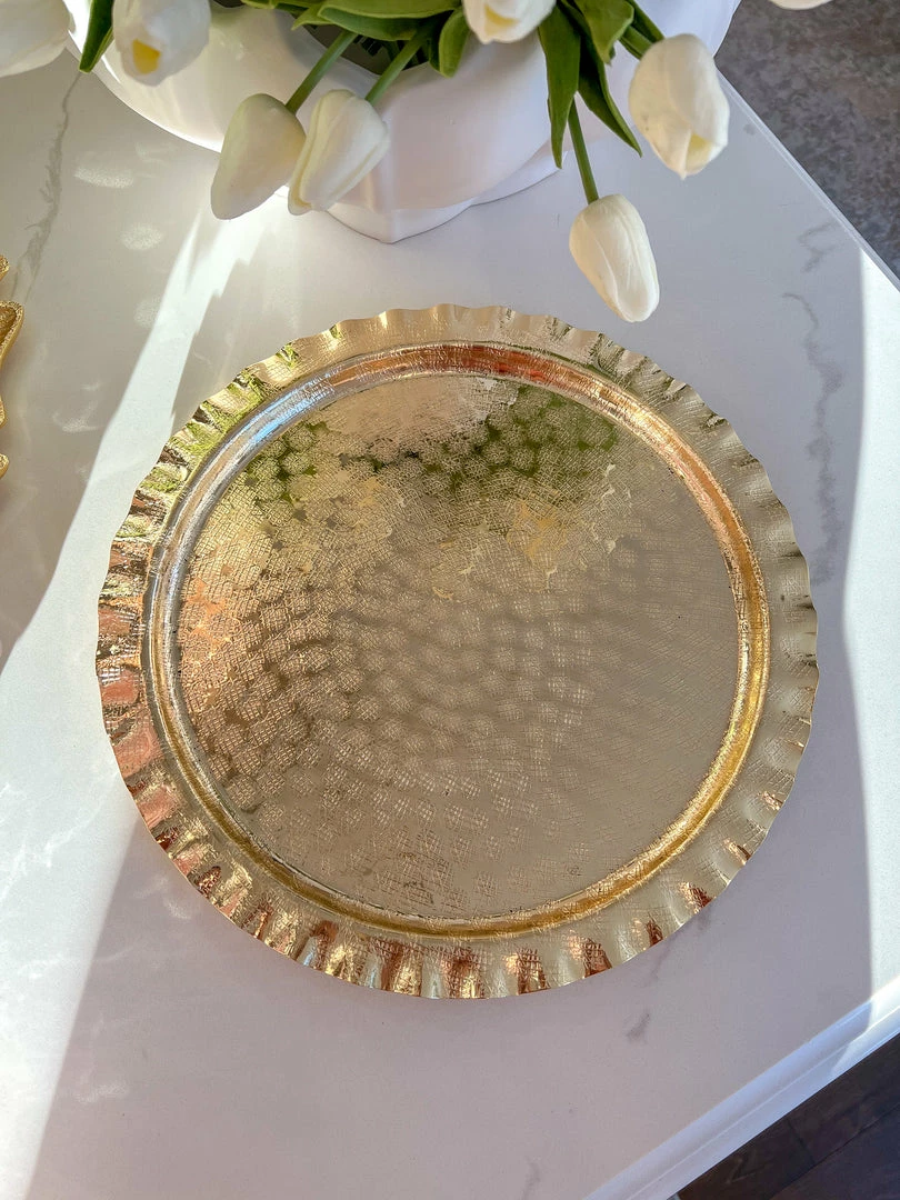 Description: This tray is absolutely stunning! The textured ruffle detail on the border of the tray adds a dramatic touch and will make the perfect base to your layered display!