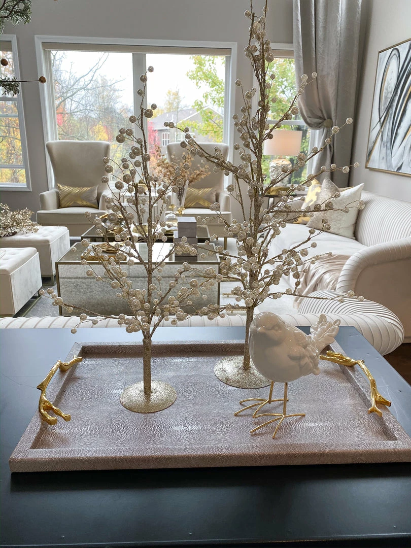 These pearl trees are a stunning way to bring texture to your holiday decor. Perfect to leave up all winter and tie back perfectly to our pearl wreath as well!