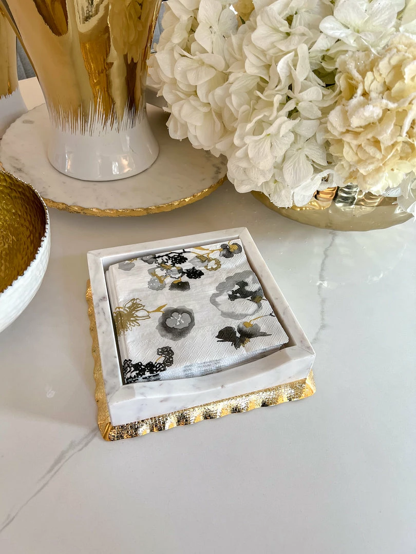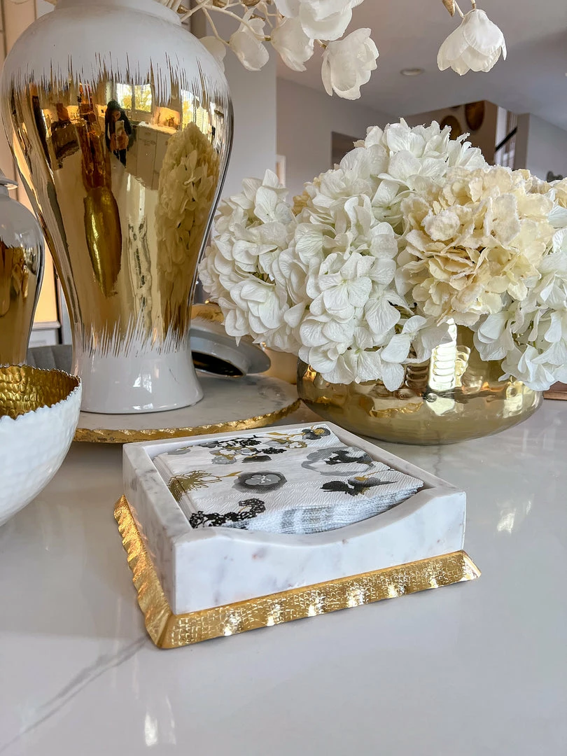 Description: This white marble and gold napkin holder is perfect for displaying your napkins when you are serving your friends or family. It makes for a perfect gift that can be used all year round!