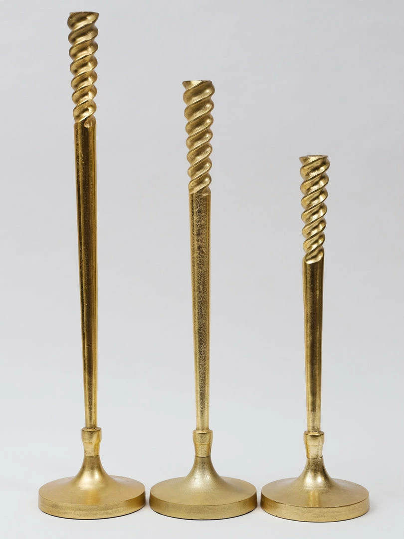 Description: These elegant gold spiral candlesticks are the perfect accessory for any season! The simple spiral design will fit well in any home and offer a beautiful base for your favorite taper candles.