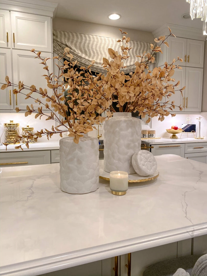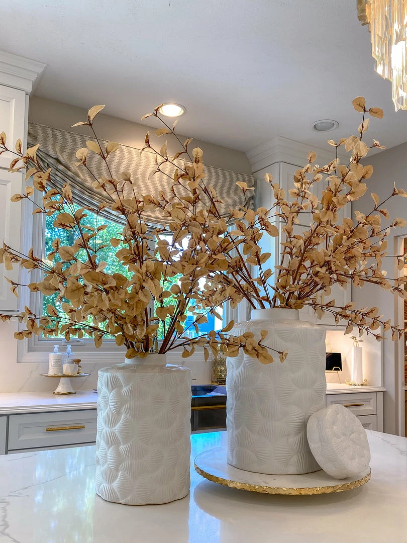 Inspire Me! Home Decor White Ceramic Vase With Stunning Gold Floral Detailed Center