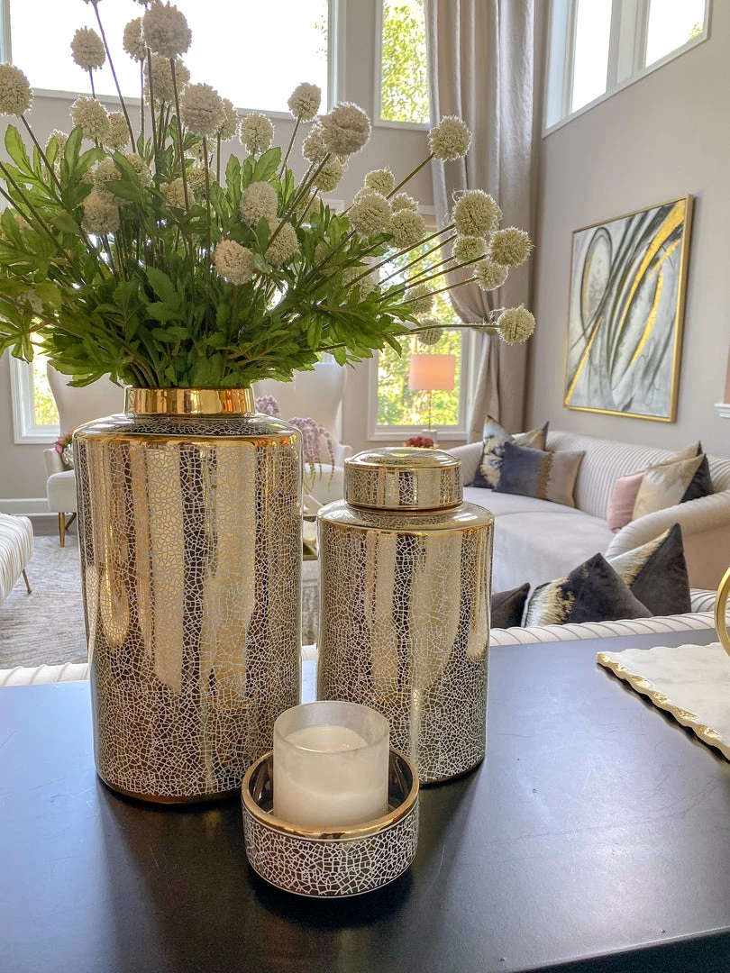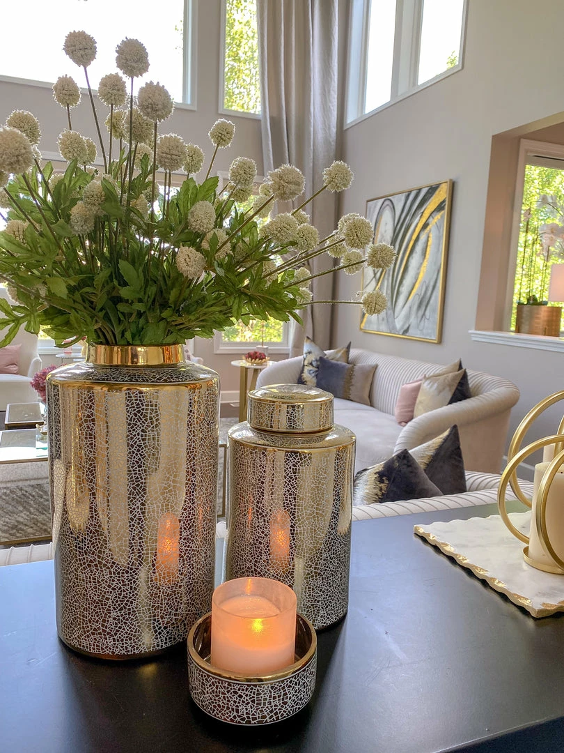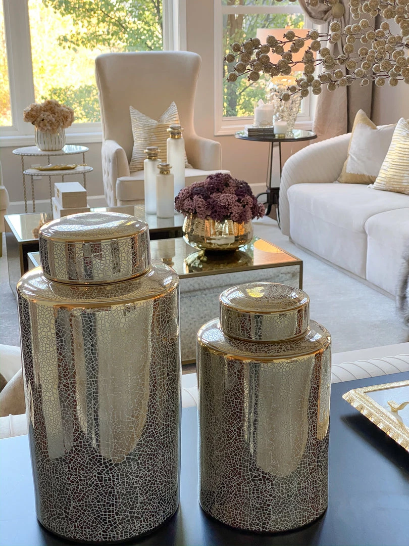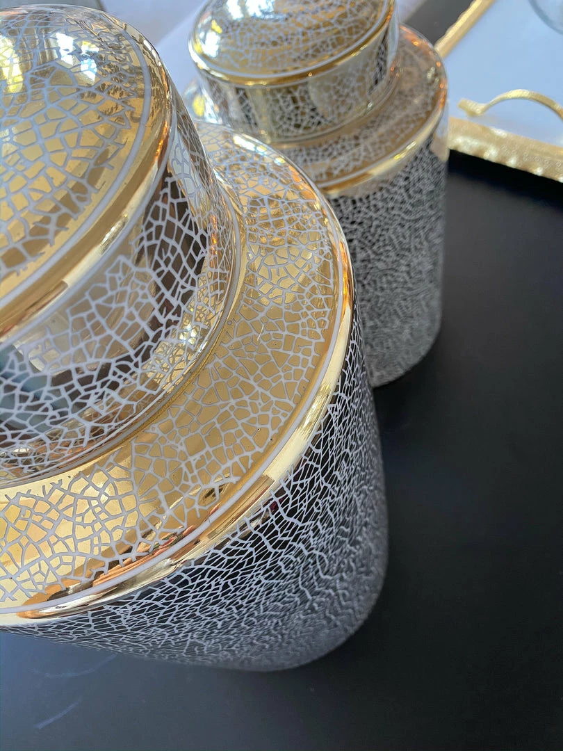 Description: These jars come with a sparkle of gold on each jar to catch and reflect the sunlight.
