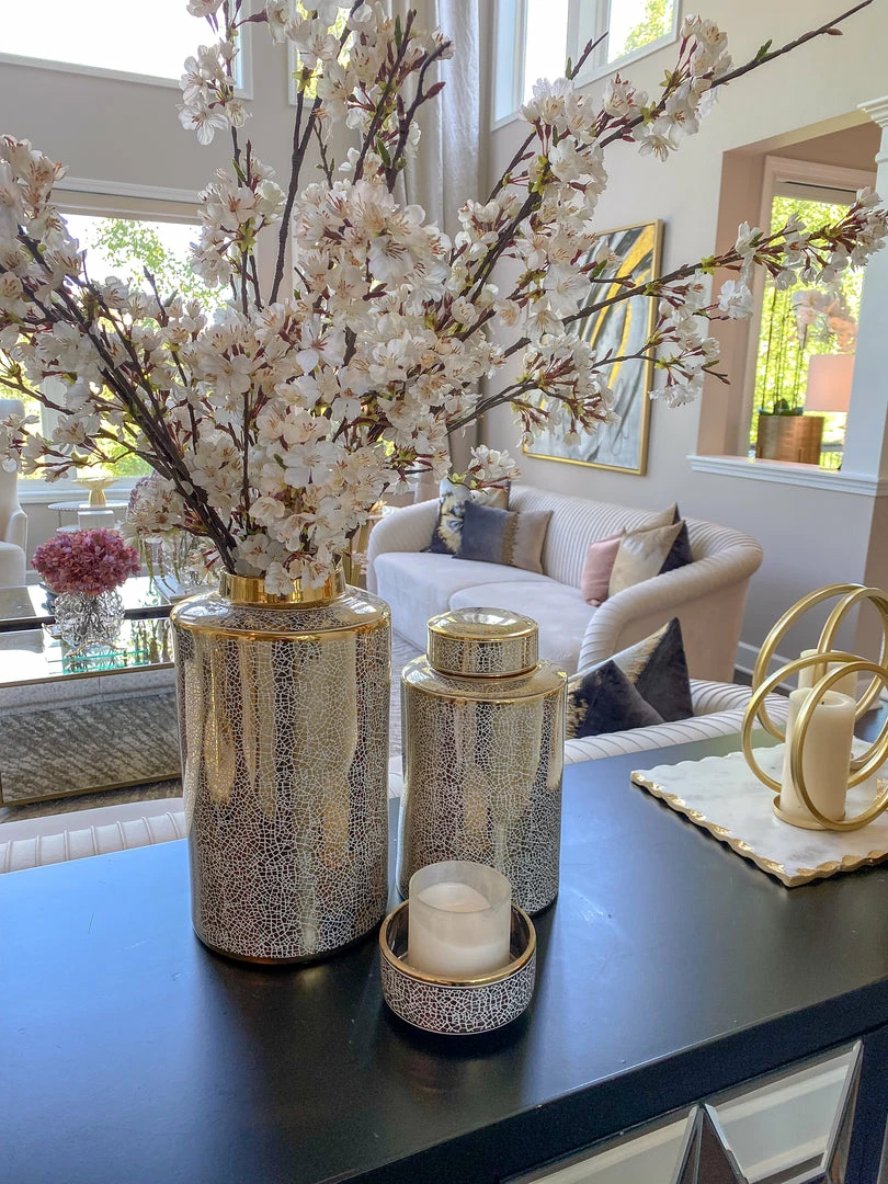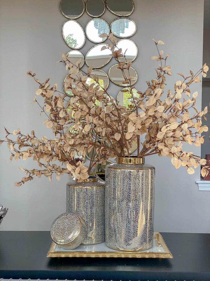 Inspire Me! Home Decor Gold Branch Centerpiece With 2 Glass Crackled Bowls