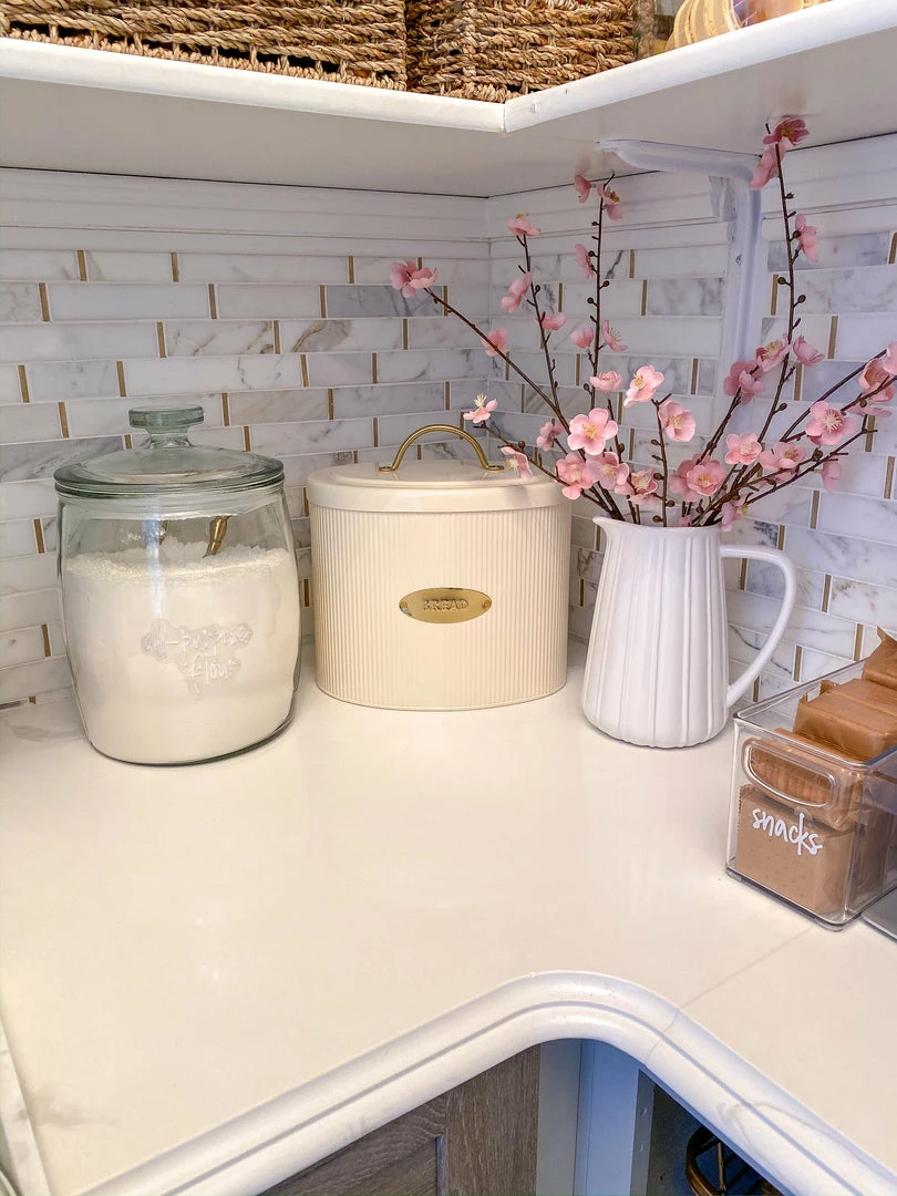 These glass containers are perfect for every pantry or counter top. Fill it with flour or rice and the airtight lid will keep it fresh! We love the simplicity of the glass.