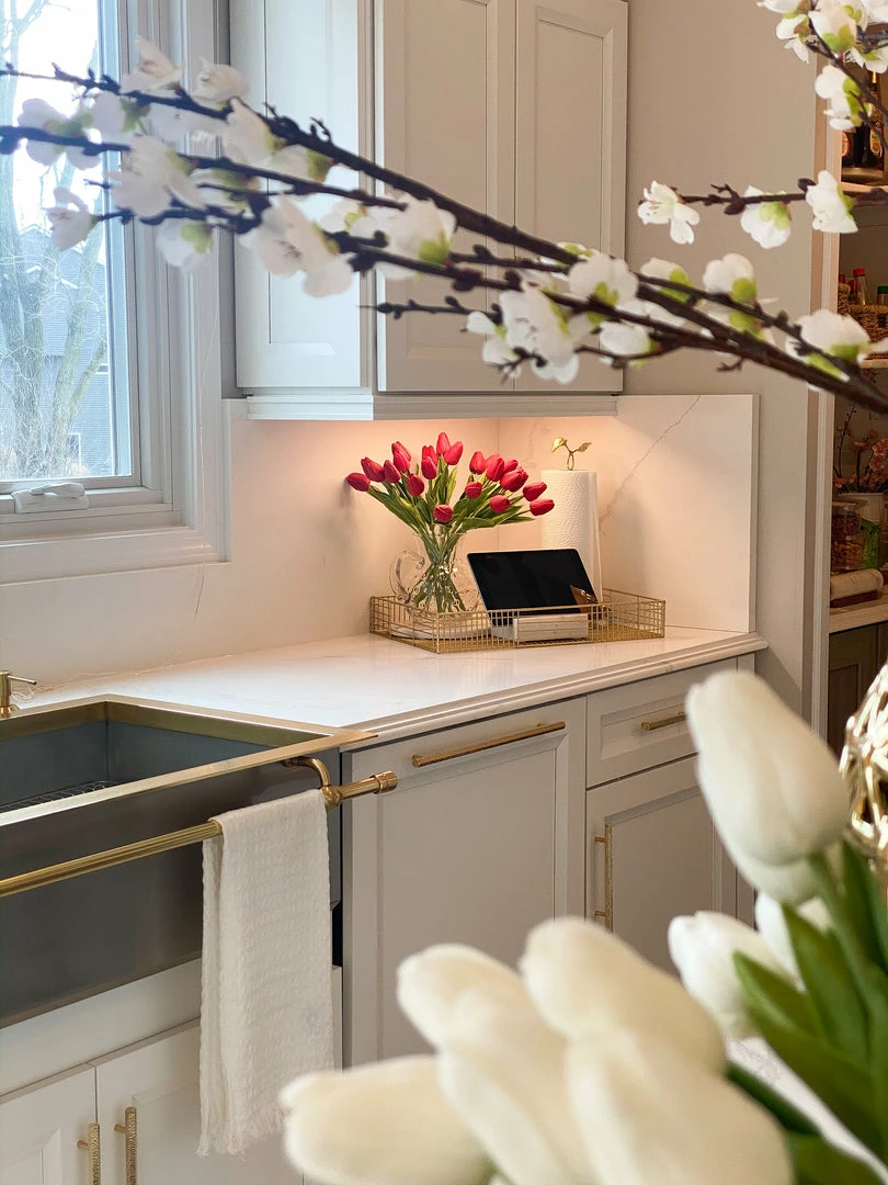 Inspire Me! Home Decor White & Black Rectangle Tray With Gold Handles & Edges