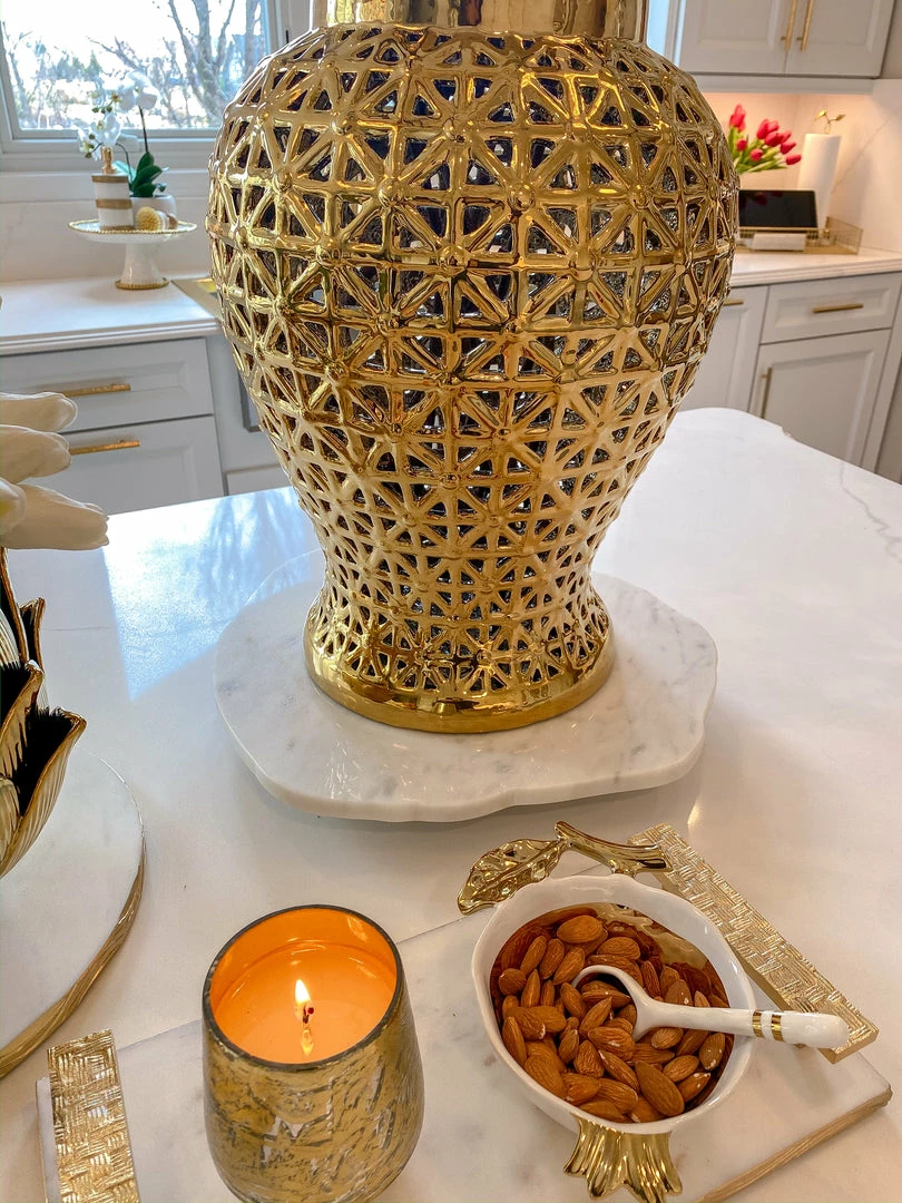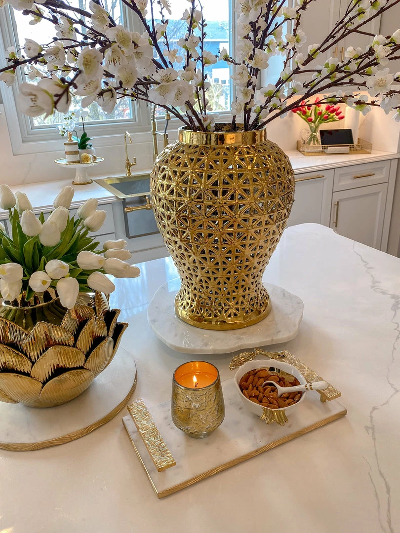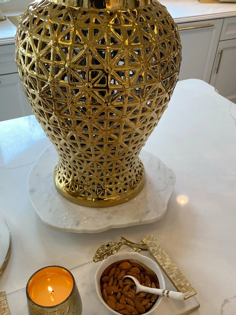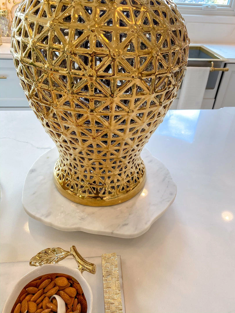 Description: This organic-shaped lazy Susan is a very cool and interesting way to bring a natural feel to your decor. Place it on your coffee table or kitchen island for an added touch of intricacy.