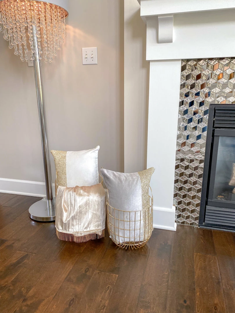 Description: These stunning oversized baskets is a wonderful home accent! Display them on their own or fill them with your favorite decorative pillows and throws! The design is timeless and elegant and will match any existing home decor! Available in silver and gold, and 2 different sizes!