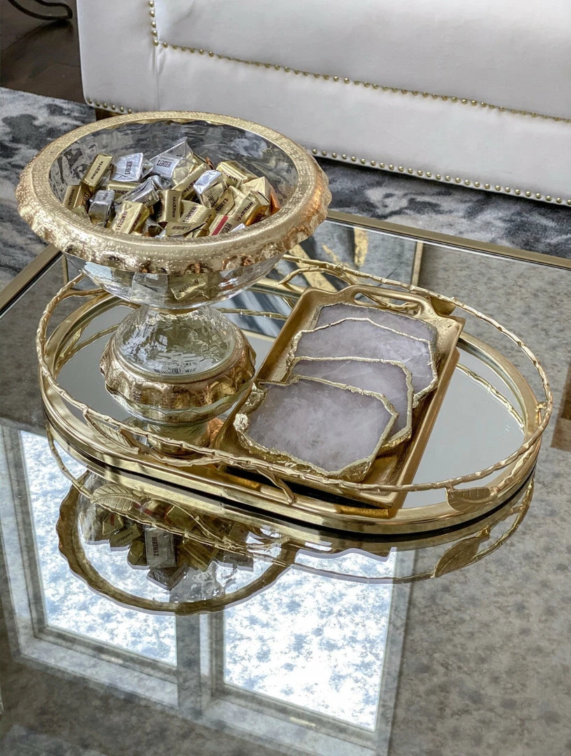 A unique piece, this glass and metal detailed bowl is perfect as a decorative bowl or as serve ware. Either way, wow your guests with this beautiful piece!