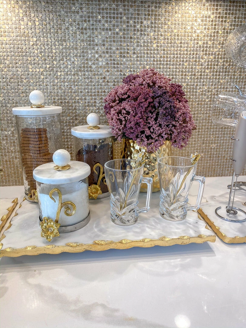 Inspire Me! Home Decor Rectangular Marble Tray With Cherry Blossom Details