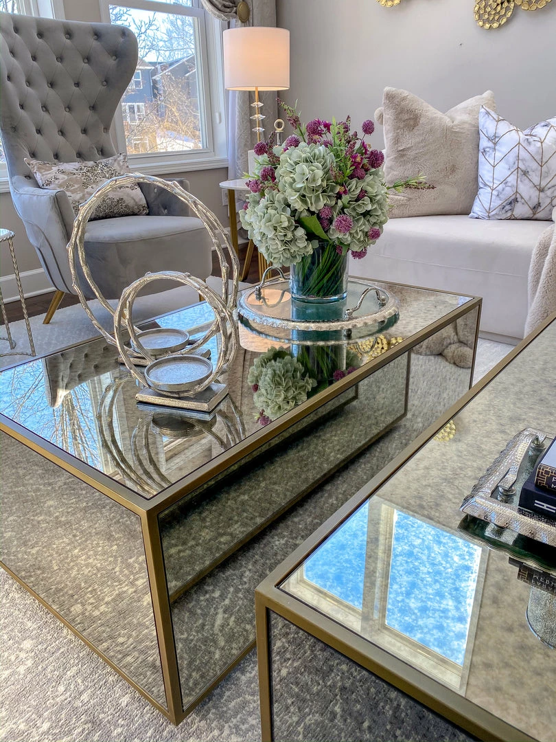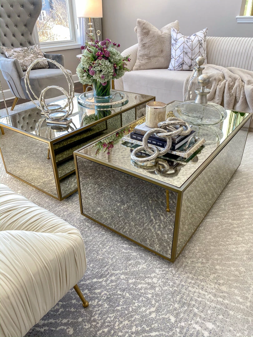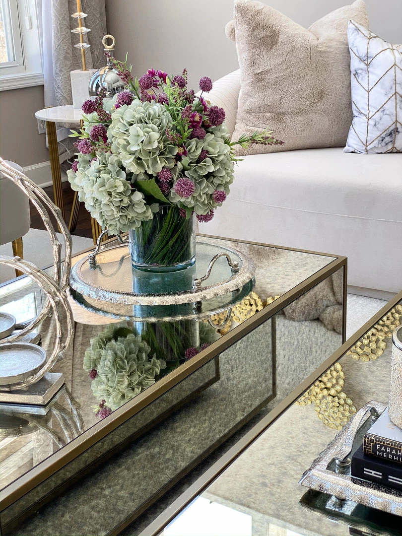 Description: This round glass tray features beautiful silver ruffle edging to elegantly display your decor.