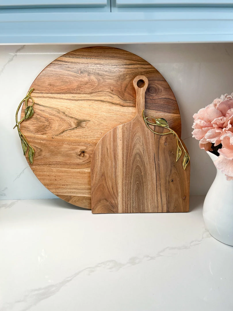 Description: This beautiful Charcuterie Board with its Gold Leaf design will add a unique elegance to your serving display! Stand it up and layer it with other boards!