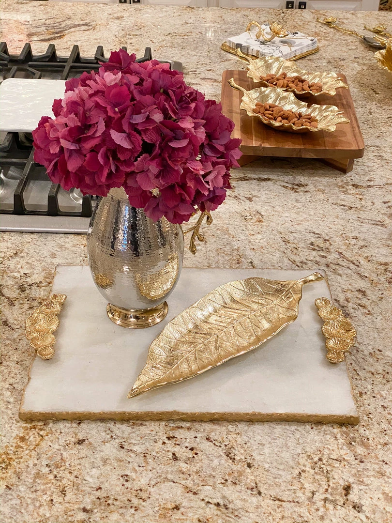 Description: A beautiful gold leaf tray perfect for displaying any of our coasters!