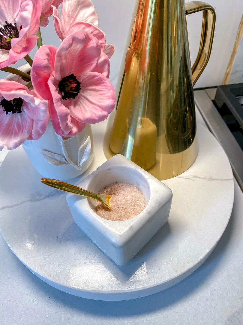 Description: This stunning squared marble bowl is a stylish piece to add to your serving decor! Perfect for your favorite herbs and spices!
