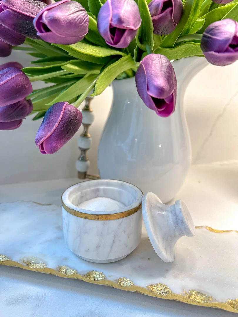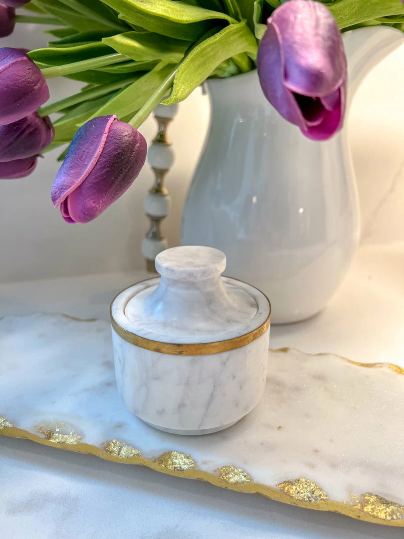 Description: This marble container is such a cute addition to your kitchen or bathroom! Keep spices in it or small trinkets, jewelry, etc!