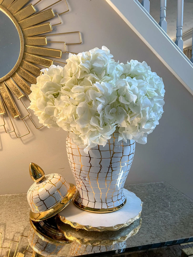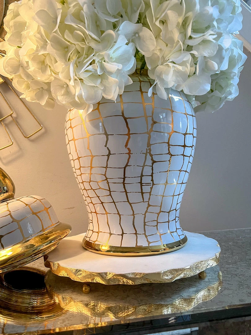 Description: This marble trivet features a gold edge that brings just the right amount of glam to your vignette!