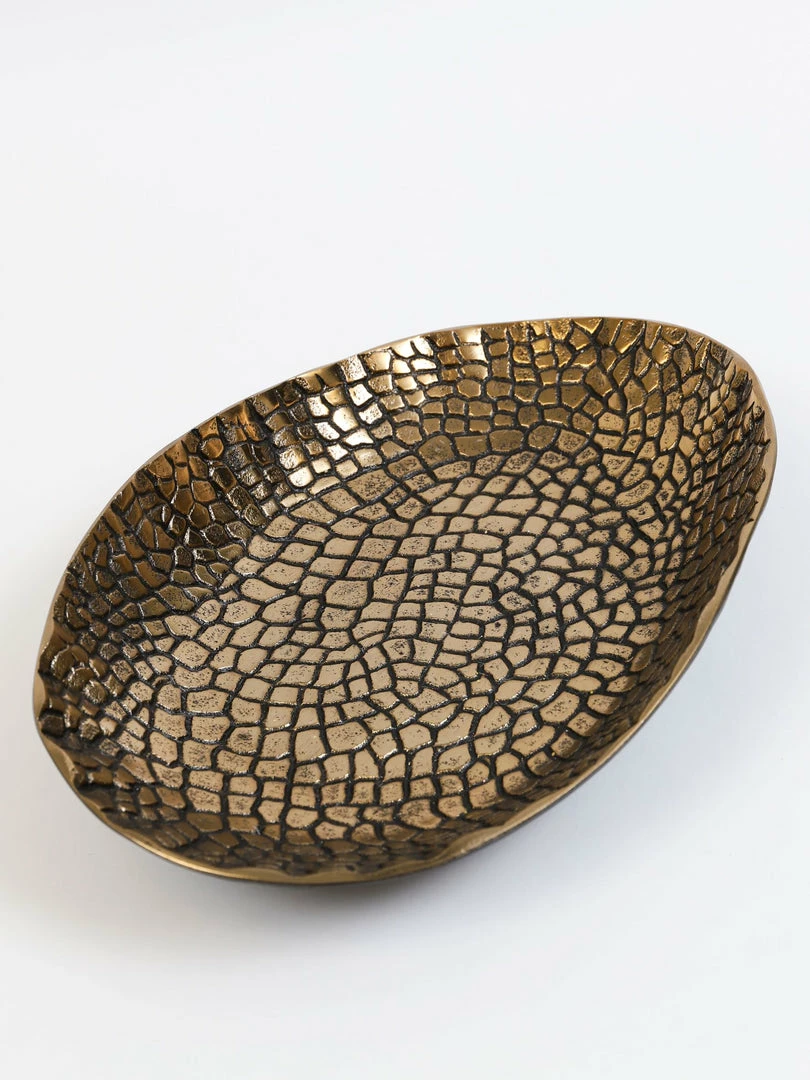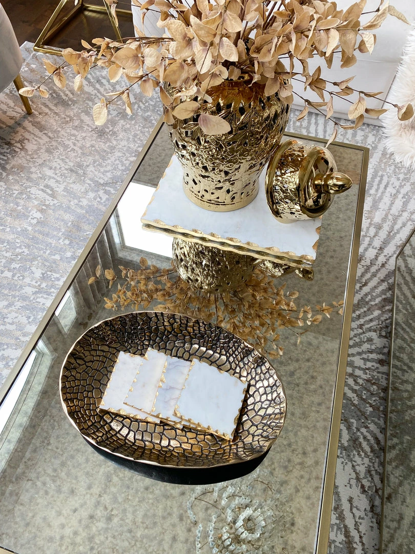 Description: This tray is the perfect accessory for any table! The bold gold crocodile pattern makes for an impressive presentation.
