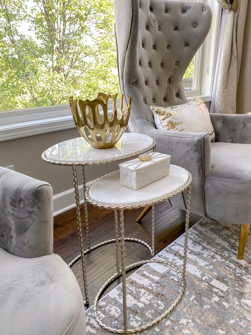 Inspire Me! Home Decor Round Marble Tray With Gold Edge And Metal Details