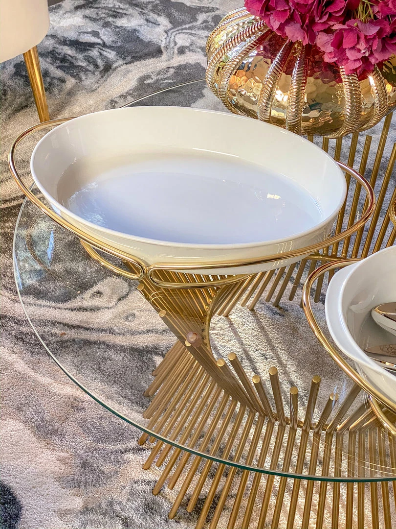 Be the first to review “Inspire Me! Home Decor Oval Porcelain Serveware With Metal Base (2 Colors)” Cancel reply