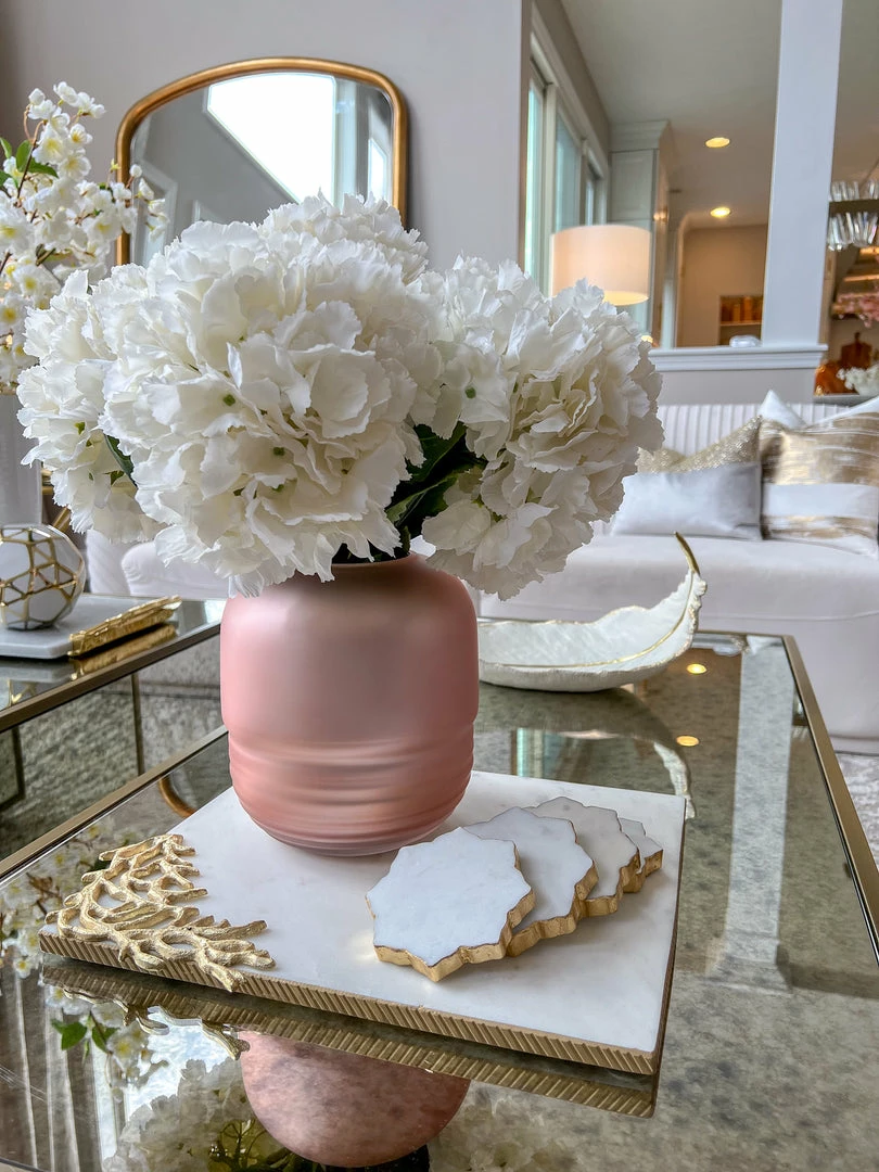 Description: This pink shimmery vase has a lavish finish and will look wonderful holding your favorite florals!
