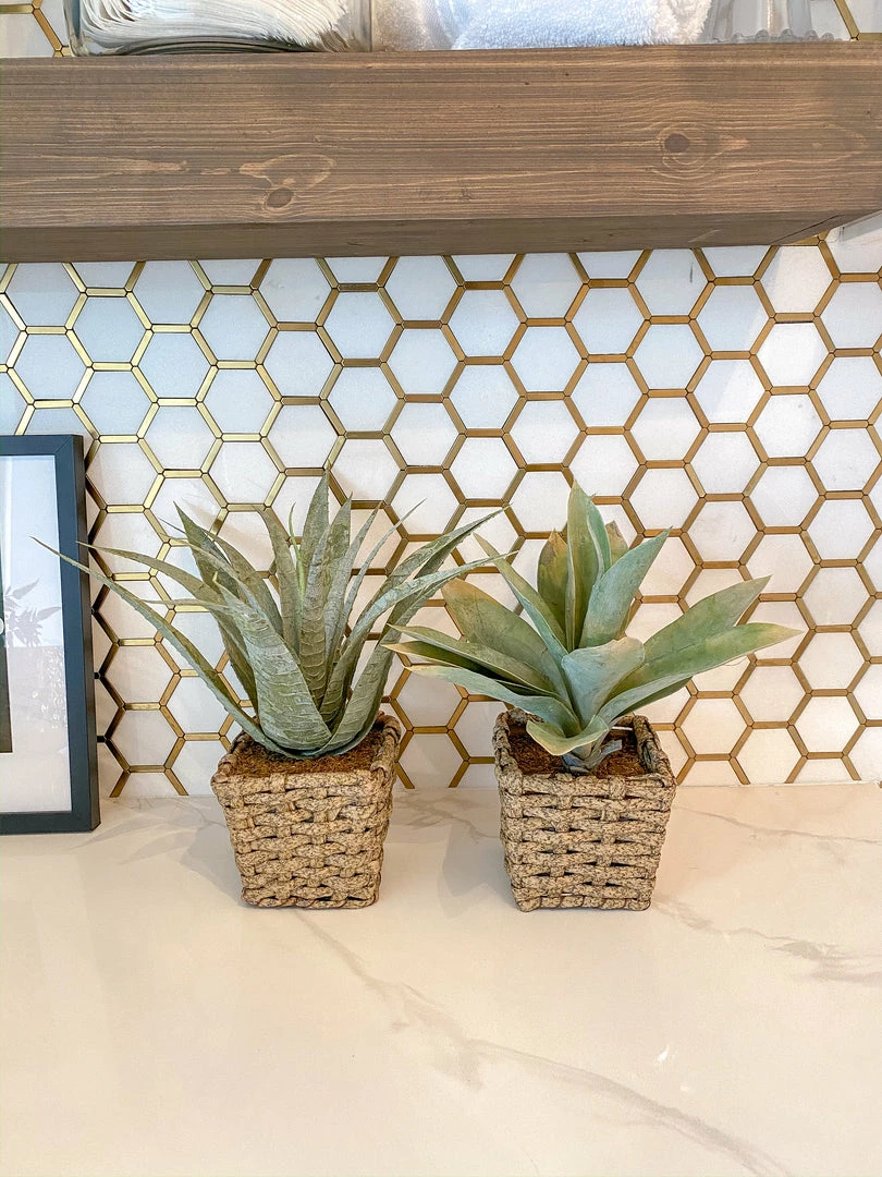 Description: This beautiful green plant is a perfect way to add some subtle color and texture to your home! The fauz agave plant spreads out from a brown basket to add a small touch of rustic charm to your home! Price comes with a set of 2 plants!