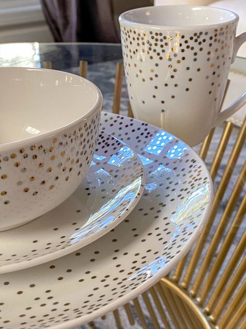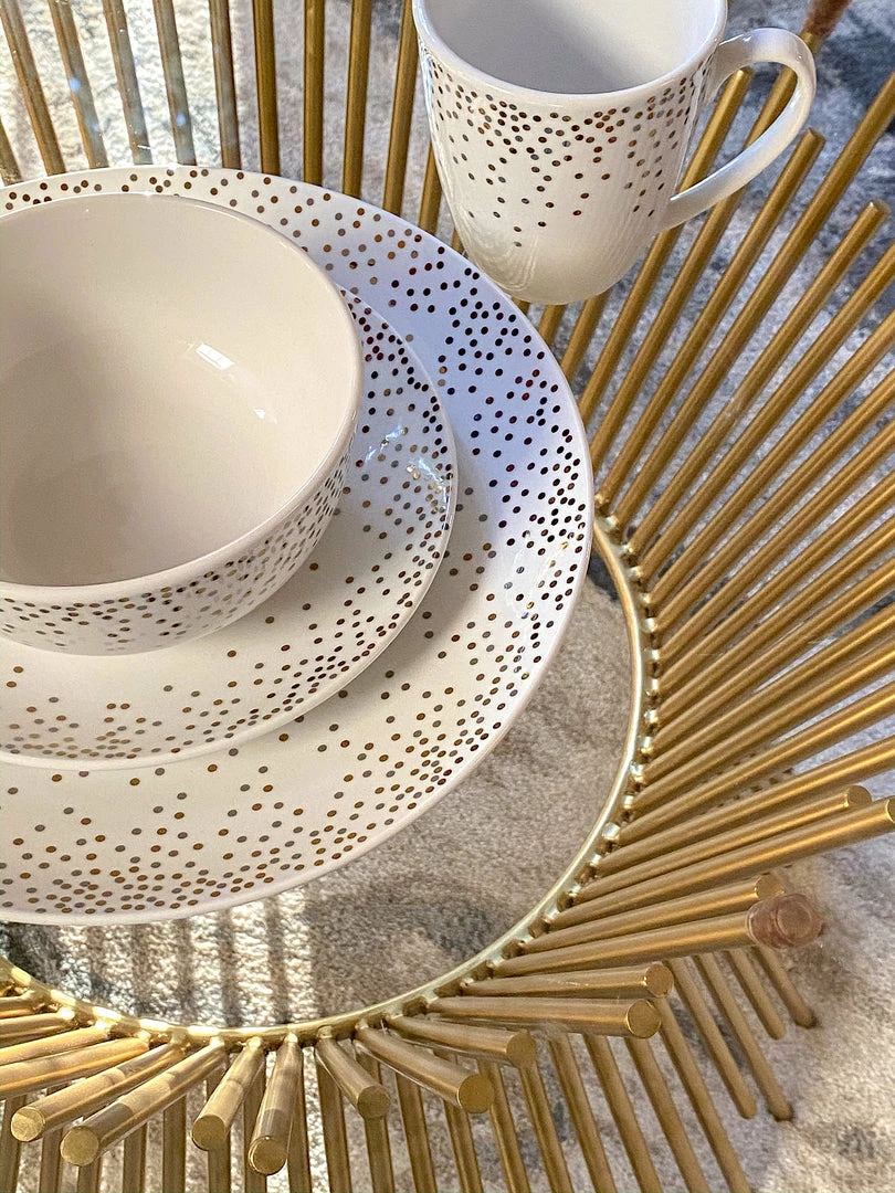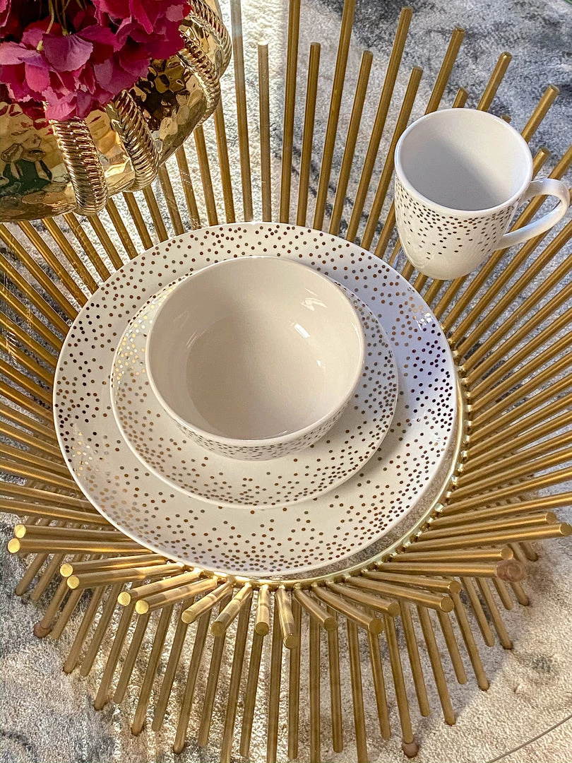 Includes: 4 Dinner Plates, 4 Salad Plates, 4 Bowls, and 4 Mugs.