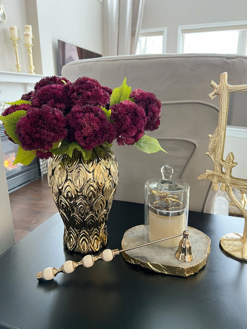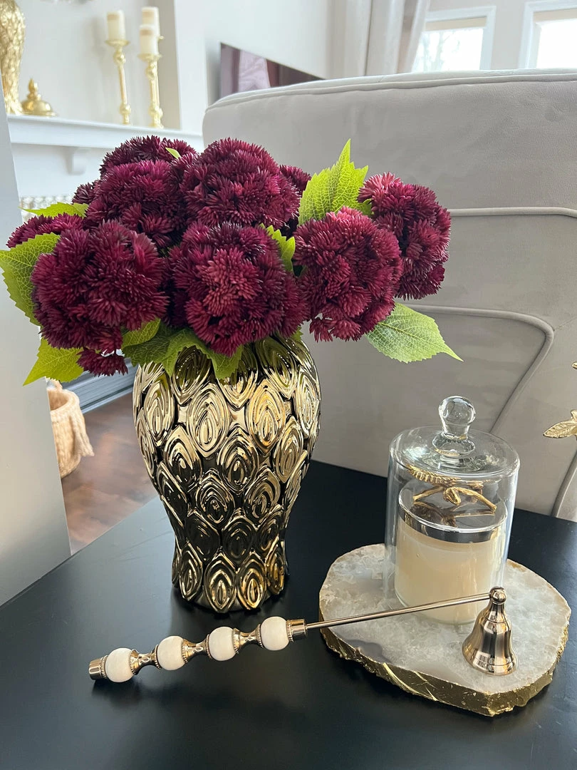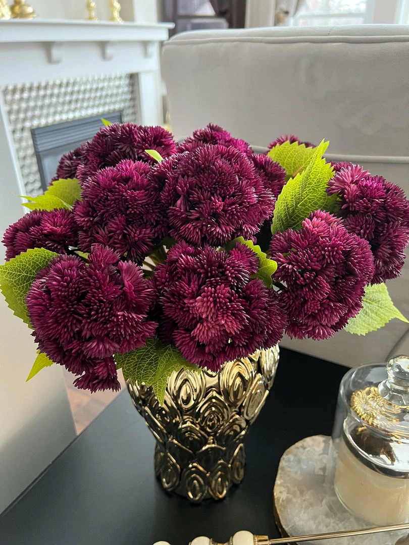 Description: These real touch dramatic purple sedum stems will add a pop of color just in time for Spring! These elegant blooms add an element of texture to any floral arrangement.