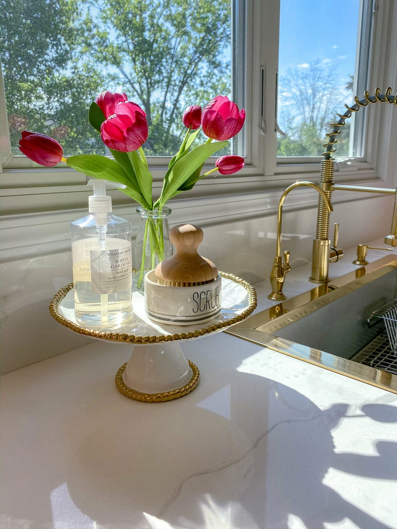 Inspire Me! Home Decor Large Rectangular Marble Tray With Cherry Blossom Details
