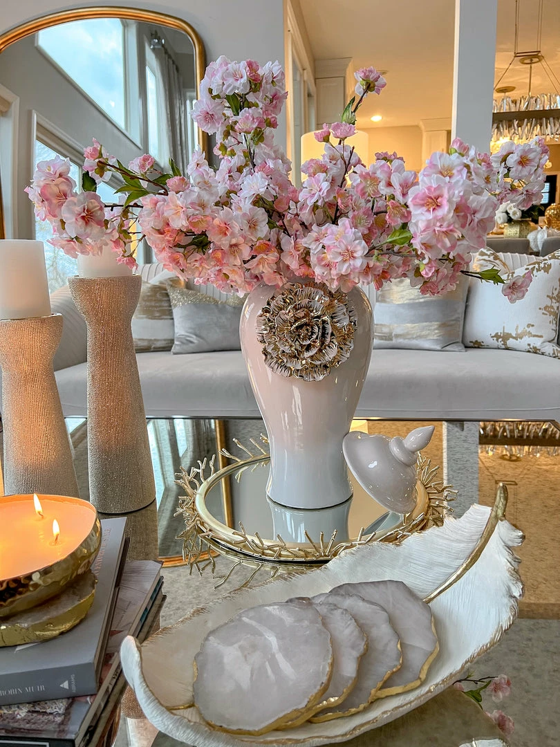 Inspire Me! Home Decor Rectangular Glass Tray With Cherry Blossom Details