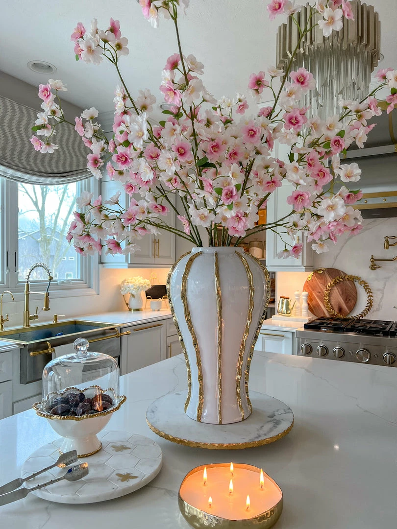 Inspire Me! Home Decor White Ceramic Vase With Stunning Gold Floral Detailed Center