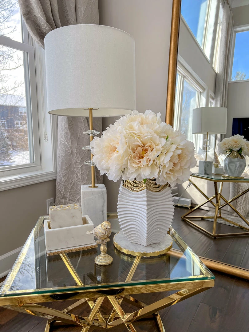 Inspire Me! Home Decor White Ceramic Candle Holder With Gold Elegant Details (2 Sizes)