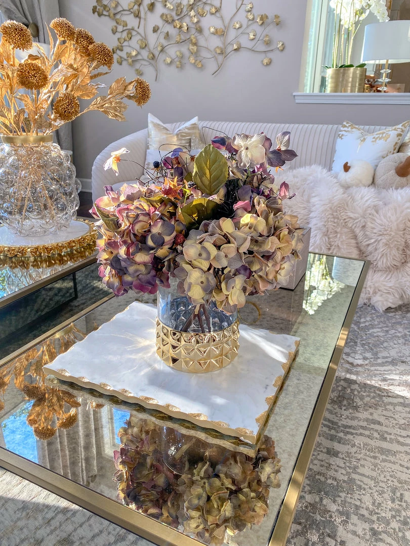 Inspire Me! Home Decor Round Marble Tray With Gold Edge And Metal Details