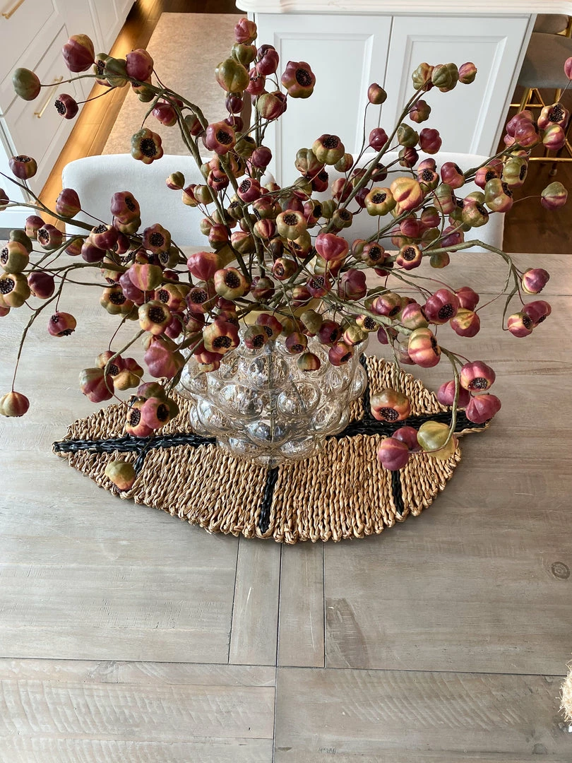 Description: This beautiful woven seagrass placement is a perfect fall accessory! Use it as the base for your vignette or to help set your table.