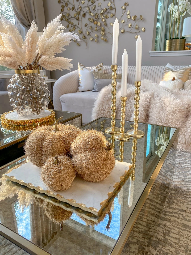 Description: We LOVE these adorable fringe pumpkins! The light feathering material adds a great texture, and the color blends with any home decor! Perfect accessory for fall!