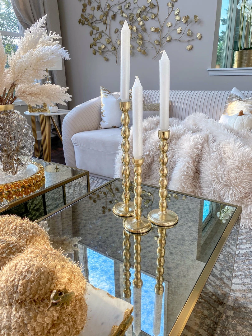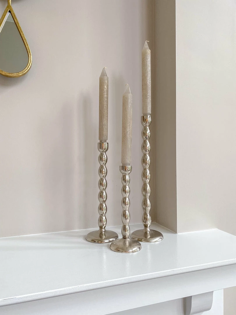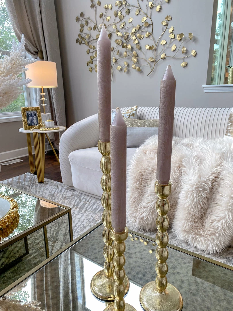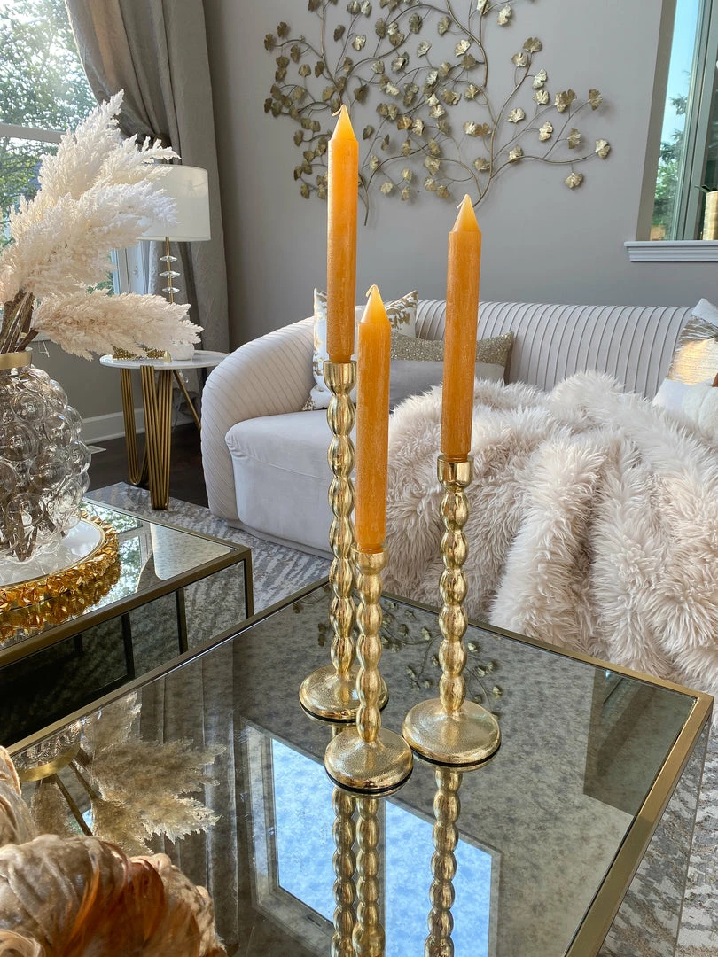 Description: These stunning metallic taper candles will make the perfect addition to your home decor! Featuring shimming flecks of gold, these candles are simple yet very elegant! Available in 4 colors!