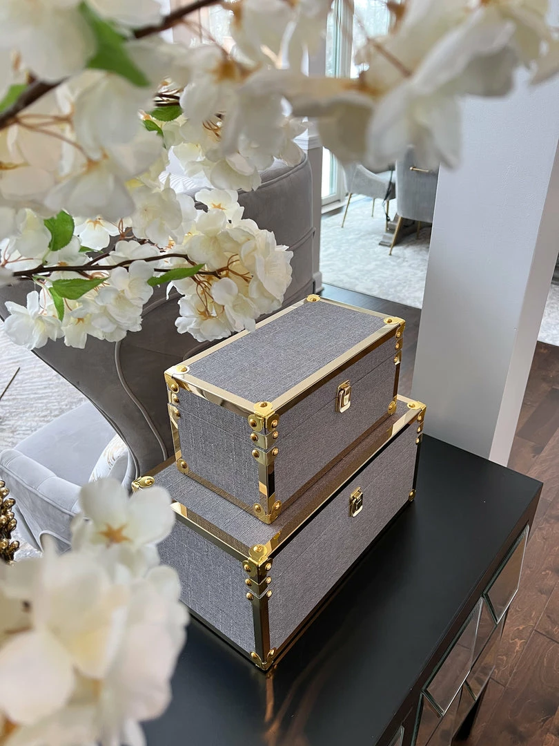 Description: These fabric-covered boxes are such a cool addition to any room! Use them as stylish storage for all of your odds and ends.