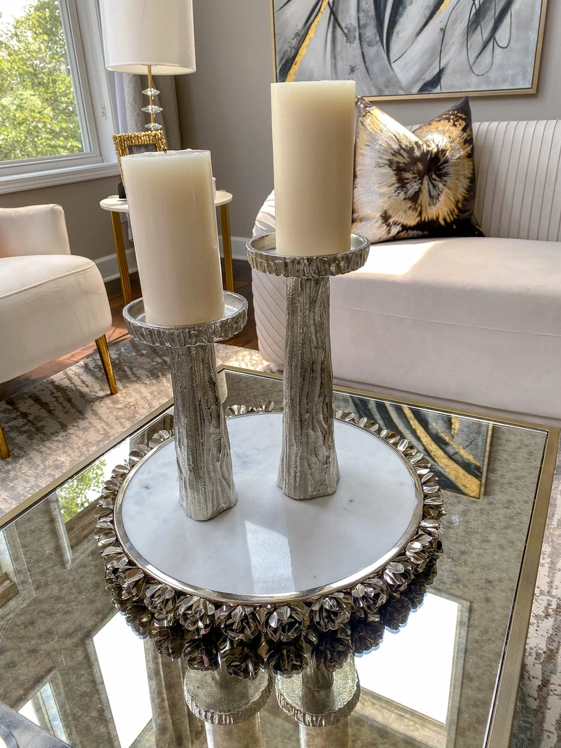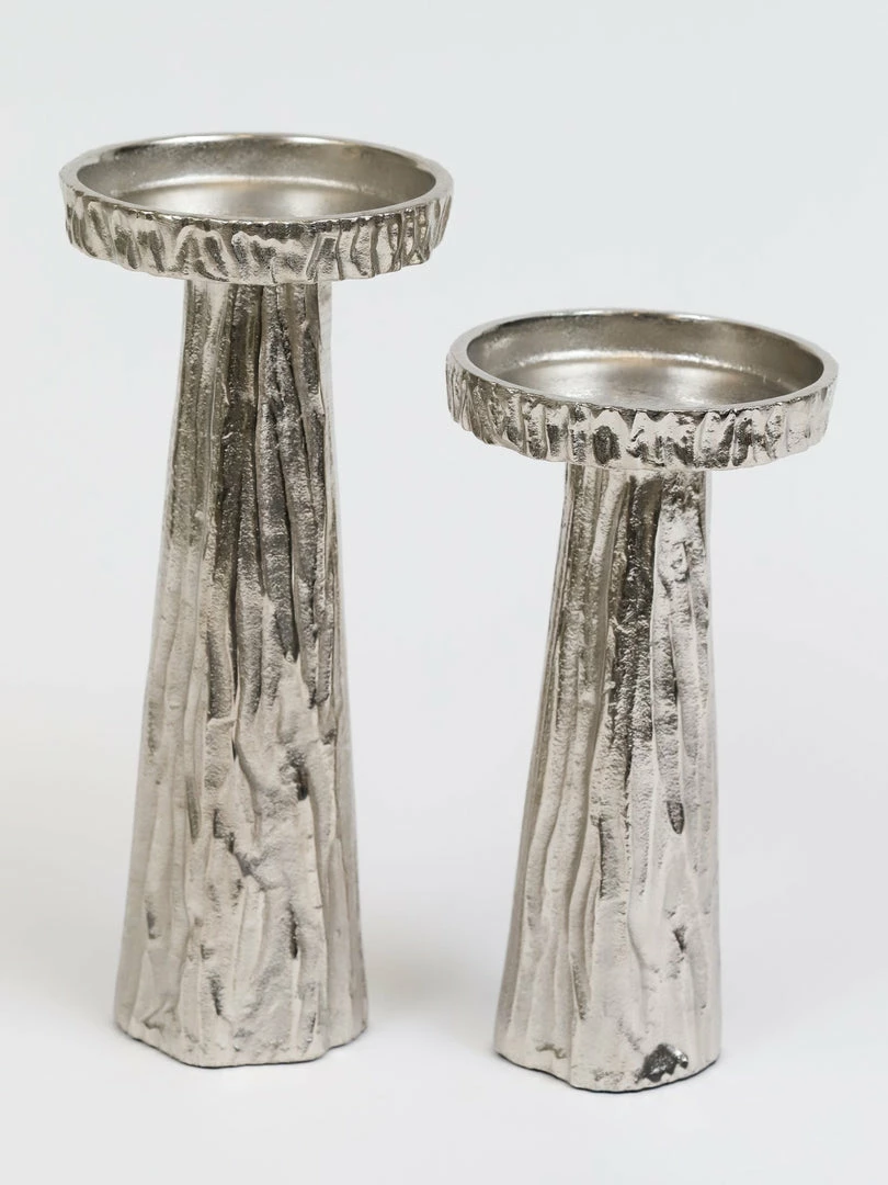 Description: These branch detail candle holders are a perfect organic accessory! Available in 2 sizes, and in Gold or Silver!
