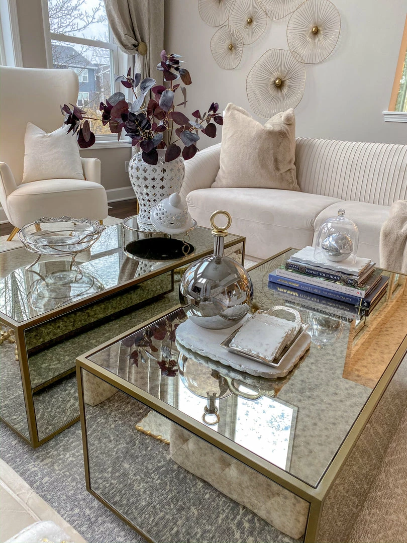 Description: This tray is a must have item! The design is simple but unique, sleek, and sophisticated. Available in silver and gold, this tray is a universal piece.