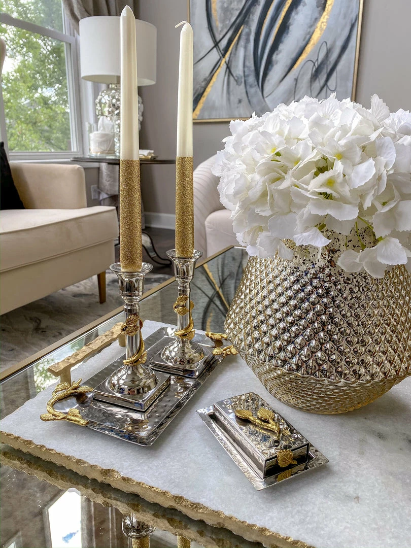 These candle holders and tray are an elegant way to display your candles.