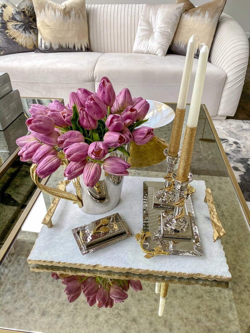 Inspire Me! Home Decor Rectangular Glass Tray With Cherry Blossom Details