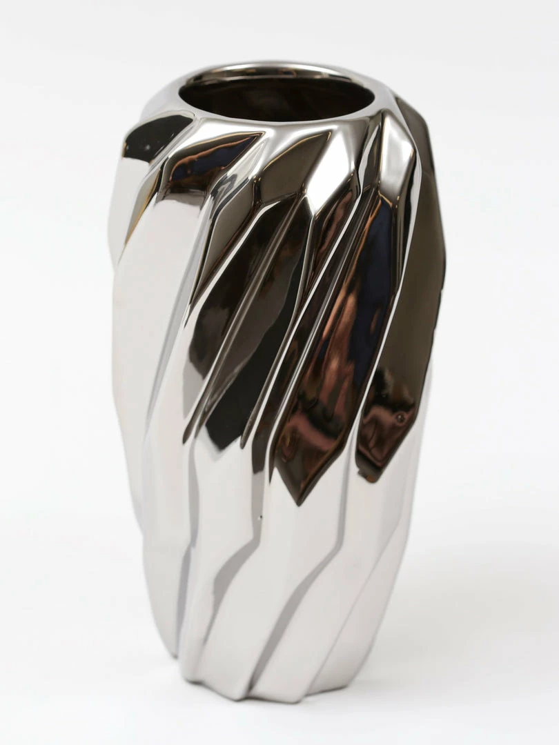 Description: This silver wavy vase is a fun way to add some texture to your home! The wavy lines offer a unique design element while still being elegant and fabulous!