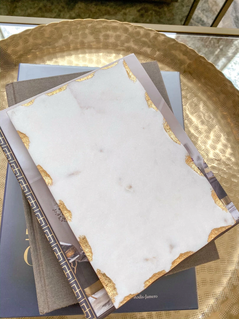 Real marble board for serving or decoration with a gorgeous metallic finish.
