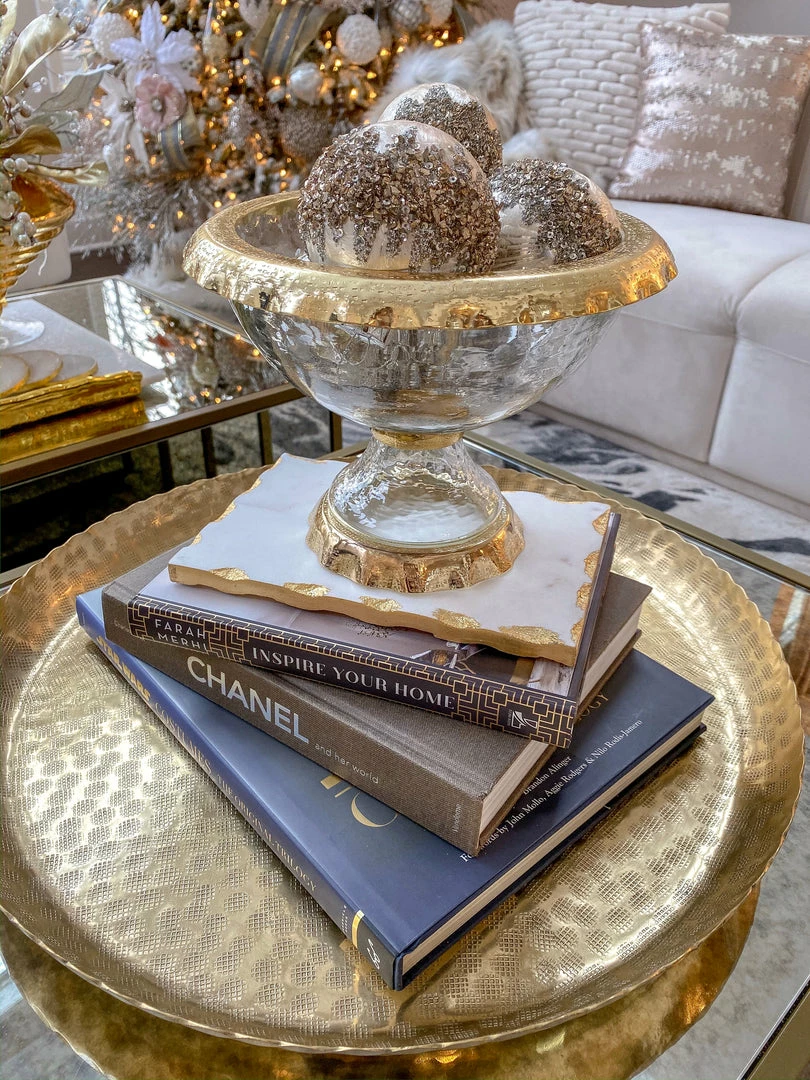 Inspire Me! Home Decor Gold Branch Centerpiece With 2 Glass Crackled Bowls