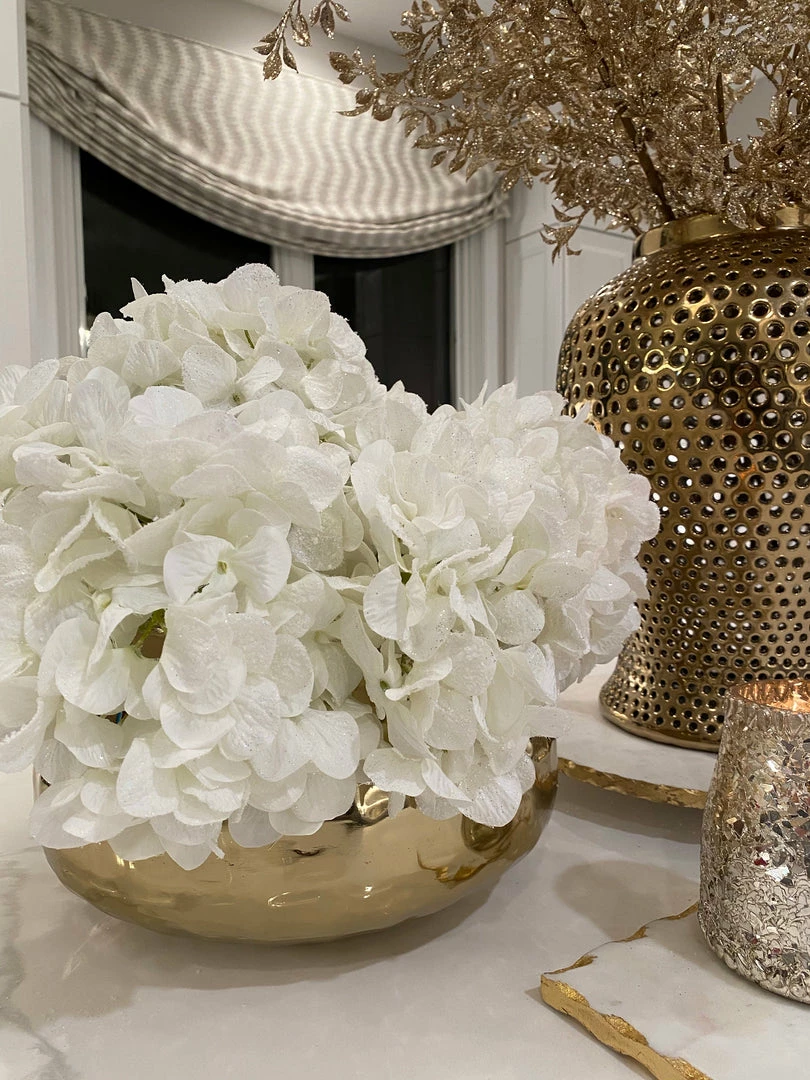 This snowy white hydrangea stem is a beautiful holiday take on a classic floral stem! Style in your favorite bowl for vase!