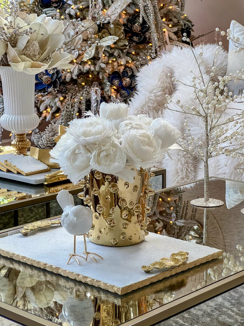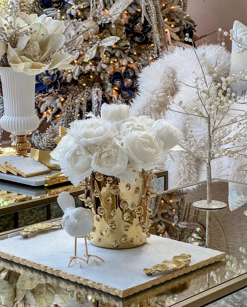 Inspire Me! Home Decor White Ceramic Vase With Stunning Gold Floral Detailed Center